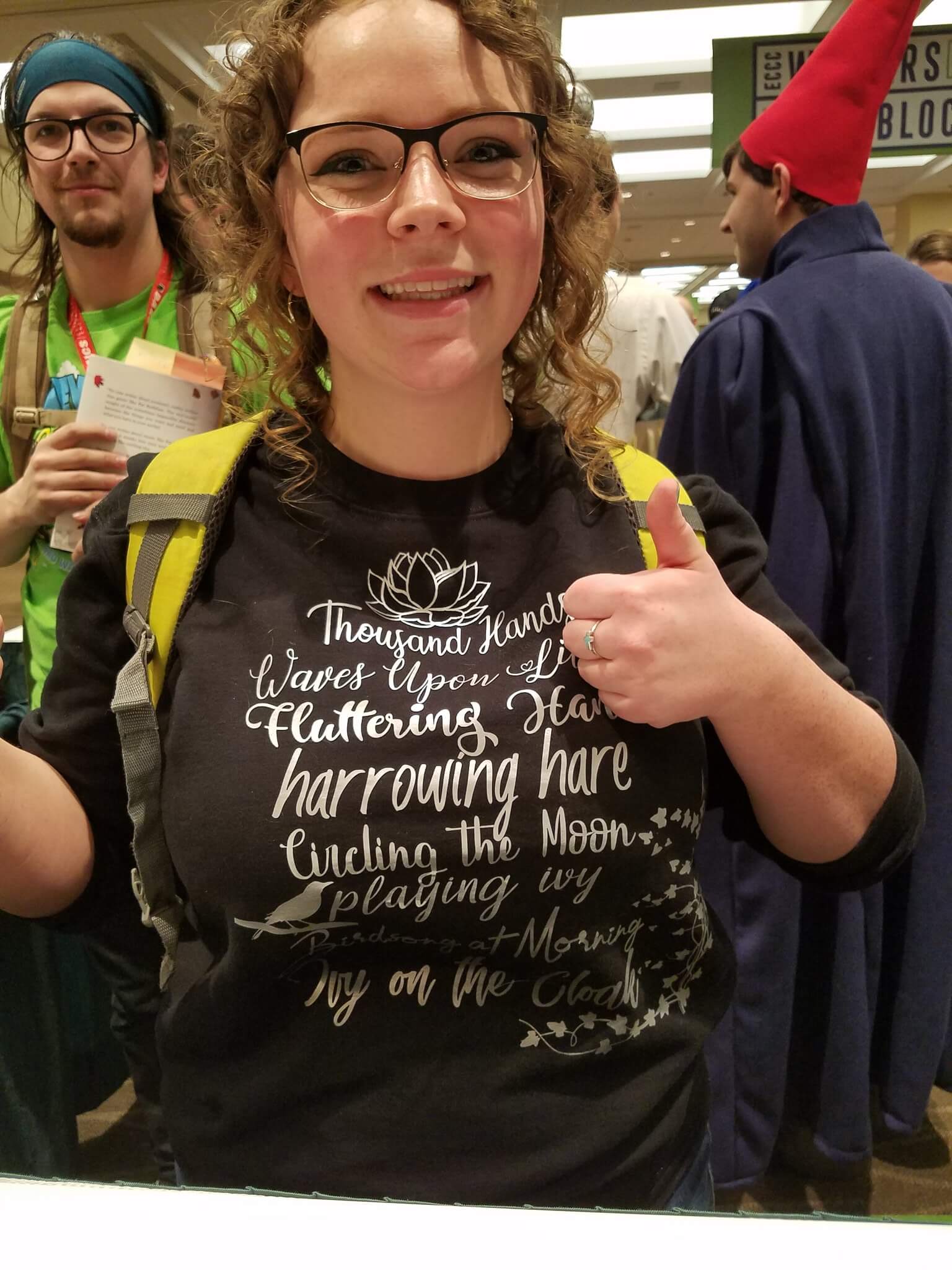 Here we have a homebrew t-shirt from the same convention. It’s not *that* strange for me to see a fanmade shirt these days, but I will say, this is the first shirt I’ve seen along this particular theme. The art design was really impressive too, and deserves a better photograph than the one I have here. But honestly? I was a little blushy and flustered when I asked if I could take the picture… so this was the best I could do.